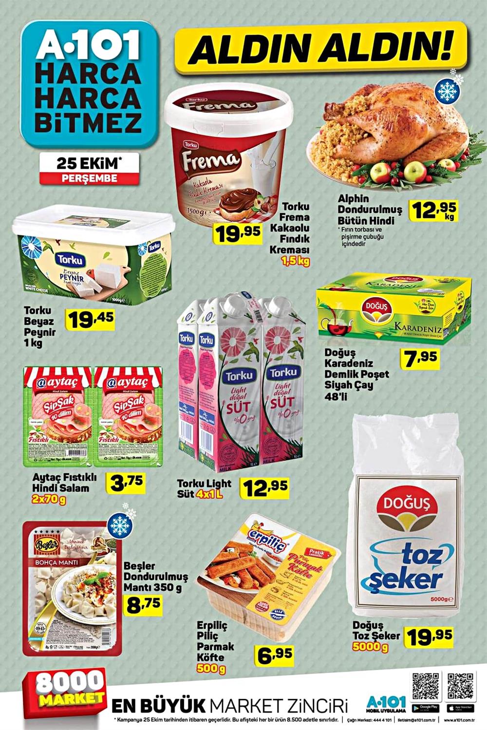 A101, 25 Ekim aktüel ürünler listesi yayınlandı. Büyük bir indirime imza atmaya hazırlanan A101, haftanın yıldızlarını raflarına yerleştirmeye başladı. İşte A101'in 25 aktüel ürünler listesine eklediği tüm ürünler ve fiyatları...