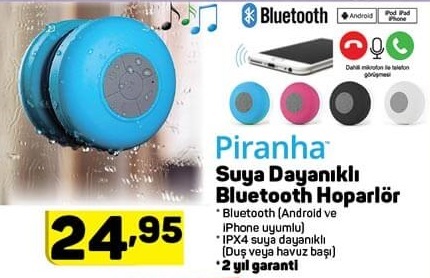 Piranha suya dayanıklı Bluetooth hoparlörler müzik severlerin ilgisini çekmeyi başarıyor. Gezi ve seyahatlerde müzik keyfi yaşamanıza olanak sağlayan bu hoparlörler şarj edilebilir özelliği sayesinde ses sisteminizi yanınızda taşımanıza olanak sağlıyor. Ayrıca söz konusu cihaz Andorid ve ıOS cihazlar ile uyumlu bir şekilde çalışabiliyor.