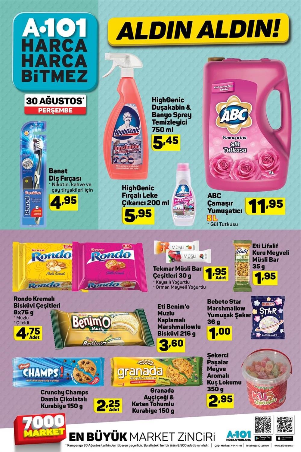 A101 30 Ağustos aktüel ürünler listesini yayınladı. Yayınladığı kataloğa bakıldığında bu haftada büyük bir indirme imza atan A101, görülmemiş fiyata 49 inç TOSHIBA marka LED TV ve akıllı bileklik satışa sunacak. İşte A101’in 30 Ağustos aktüel ürünler listesine eklediği tüm ürünler ve fiyatları...