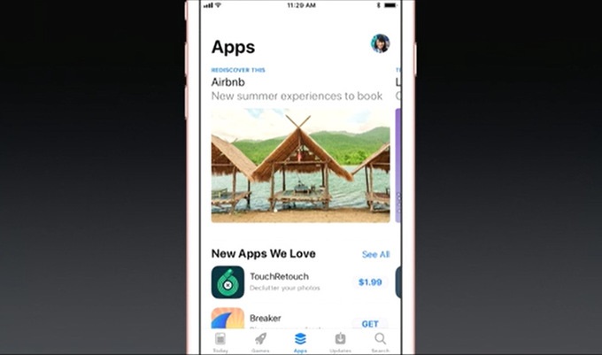 App Store'un tasarımı baştan aşağı değişti. Apple, bu köklü değişikliği 10 yıldır ilk kez yaptığını açıkladı. Oyunların ve uygulamaların farklı sekmelerde görüntülendiği yeni tasarımda, uygulama içi görüntü ve tasarım da değişikliğe uğramış.