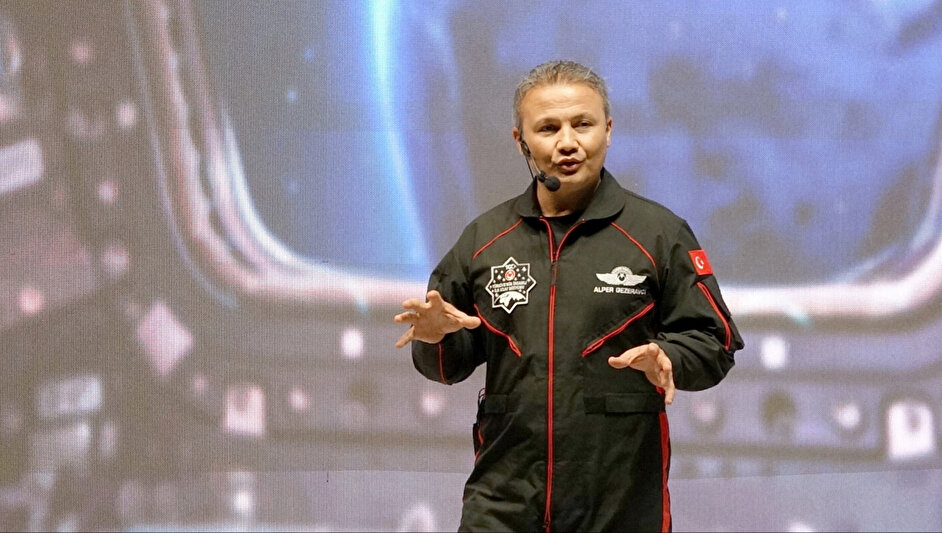 Türkiye'nin ilk astronotu Alper Gezeravcı, uzaya gitme süreci ve öncesinde yaşananlar ile hayalleri ve deneyimlerini öğrencilerle paylaştı. Herkese katılımları için teşekkür eden Gezeravcı,