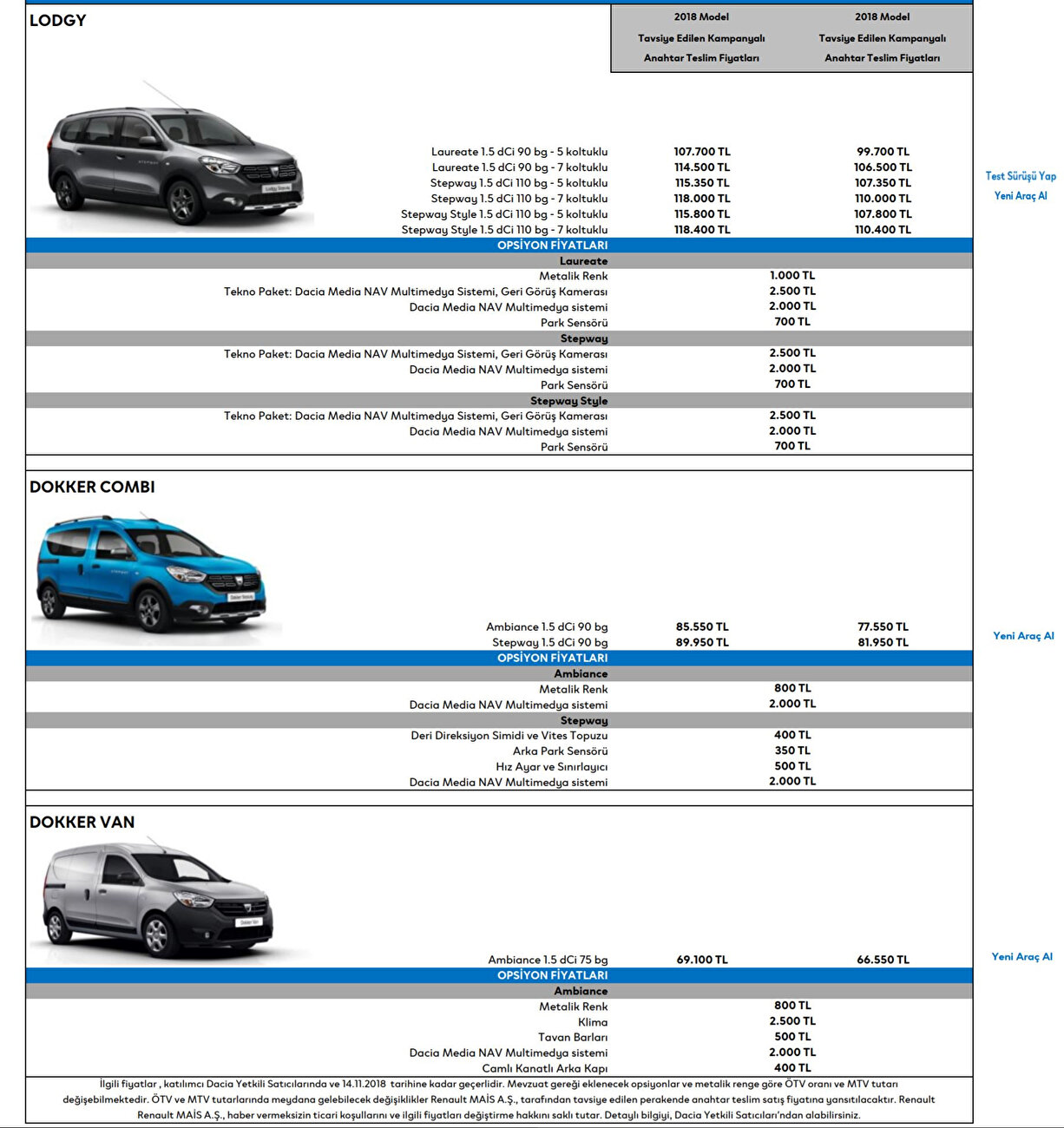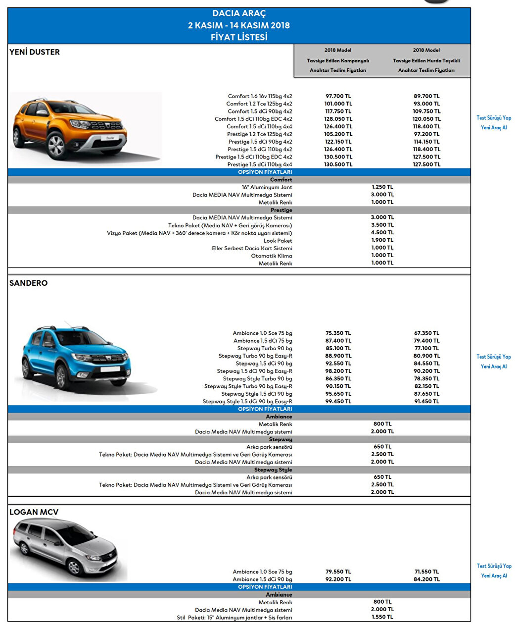Türkiye’nin en çok tercih edilen otomotiv markalarının başında gelen Dacia ÖTV ve KDV indirim kararının Resmi Gazete’de yayınlanması ile bilirlikte tüm fiyat listesini yeniden güncelledi. Fiyat performans değerleri ile kullanıcıları tarafından büyük bir beğeni toplamayı başaran araç, yakıt değerleri ile de kullanıcılarının kendisine hayran bırakıyor. ÖTV ve KDV indirimi kararının alınması ile birlikte yüzde 15’lik bir indirim ile tüm modellerinin fiyatlarını güncelleyen Dacia, indirimli güncel fiyat listesini resmi sitesinde yayınladı.