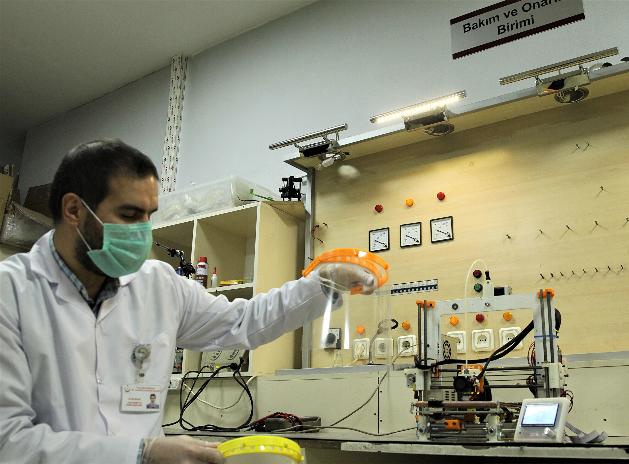 Van Eğitim ve Araştırma Hastanesi hekimleri, korona virüsten korunmak için geliştirdikleri 3D yazıcıdan sağlık çalışanları için yüz siperliği üretimine başladı.