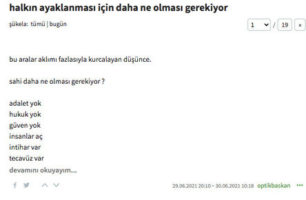 Her fırsatta Türkiye Cumhuriyeti hükümeti, toplumun manevi değerleri aleyhine nefret söylemlerine yer vermesiyle gündeme gelen Ekşi Sözlük isimli internet sitesi, bu kez de 'halk ayaklansın' çağrılarına yer verdi.