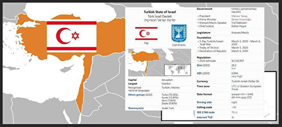 Gelen tepkiler ardından kaldırılan 2020 tarihli başlıkta, Türk - Musevi devletini resmeden bir harita yer alıyordu. Harita, 'Türkiye ve İsrail'in birleşiminden oluşan ütopya devlet' denilerek sunuldu.