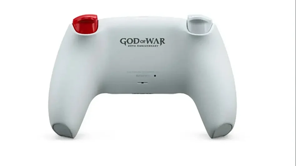 Özel tasarımda Kratos’un yüz dövmesini simgeleyen kırmızı şerit, beyaz gövdenin üzerinde dikkat çekiyor. Yüz düğmeleri beyaz zemin üzerine kırmızı sembollerle tasarlanırken, D-pad ise beyaz zemin üzerinde kırmızı ok işaretleriyle geliyor. Arka yüzünde ise God of War 20. Yıl Dönümü logosu yer alıyor.
