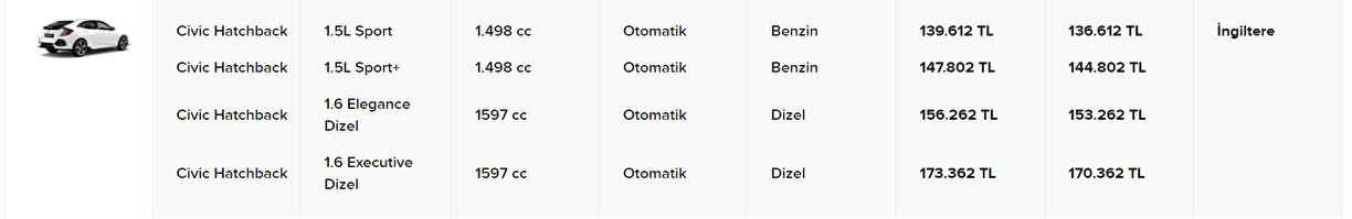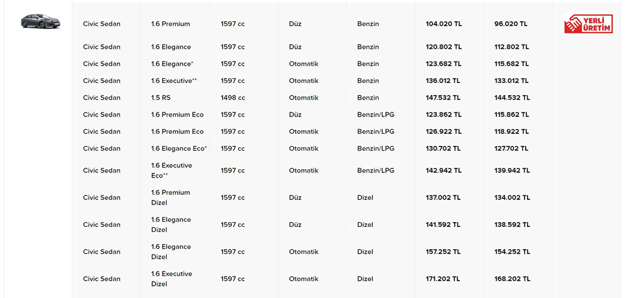 Türkiye pazarında büyük bir satış başarısı yakalamayı başaran Honda, ÖTV ve KDV indirim kararının Resmi Gazete’de yayınlanması ile bilirlikte tüm fiyat listesini yeniden güncelledi. Türkiye’de Civic modeli ile ekim ayında liderliği kimselere kaptırmayan Japon otomotiv devi, tüm modellerine uyguladığı ÖTV ve KDV indirimi ile satış hedefini daha da yukarıya taşımayı hedefliyor. Kararın açıklanmasıyla birlikte indirimleri araçlarına yansıtan firma ÖTV ve KDV indirimli güncel fiyat listesi resmi sitesinde yayınladı.