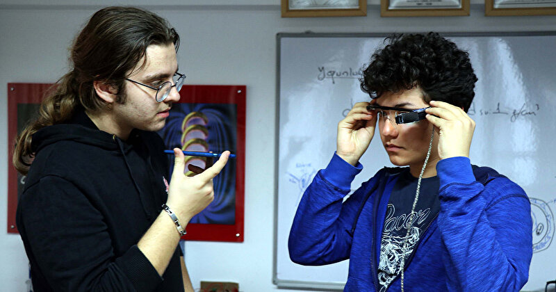 - Gözlüğün yan tarafında bir aparat var. Tamamen gözlük içine yerleştirsek çok daha güzel olur ama bizim teknolojimiz buna yeterli gelmiyor ama bu olabilecek bir şey. Türk öğrencileri her şeyi yapabilecek kabiliyette. Biz güçlü ve zeki bir milletiz."
