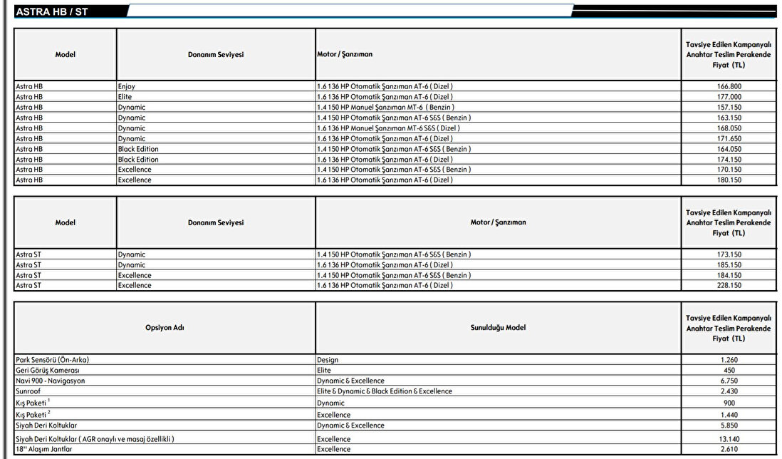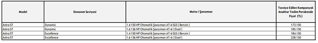 Türkiye’de büyük bir hayran kitlesine sahip olan Opel, ÖTV ve KDV indirim kararının Resmi Gazete’de yayınlanması ile bilirlikte tüm fiyat listesini yeniden güncelledi. Alınan karar ile birlikte tüm modellerinin fiyatlarını güncelleyen otomotiv devi, 24.000 TL’ye varan yeni indirimli listesini resmi sitesinde yayınladı.
