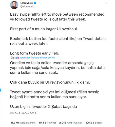 Şubat ayının başında bu uygulamaya geçileceğini sosyal medya hesabından duyuran yeni Twitter CEO'su, bundan sonraki yenilikleri ise merak konusu.