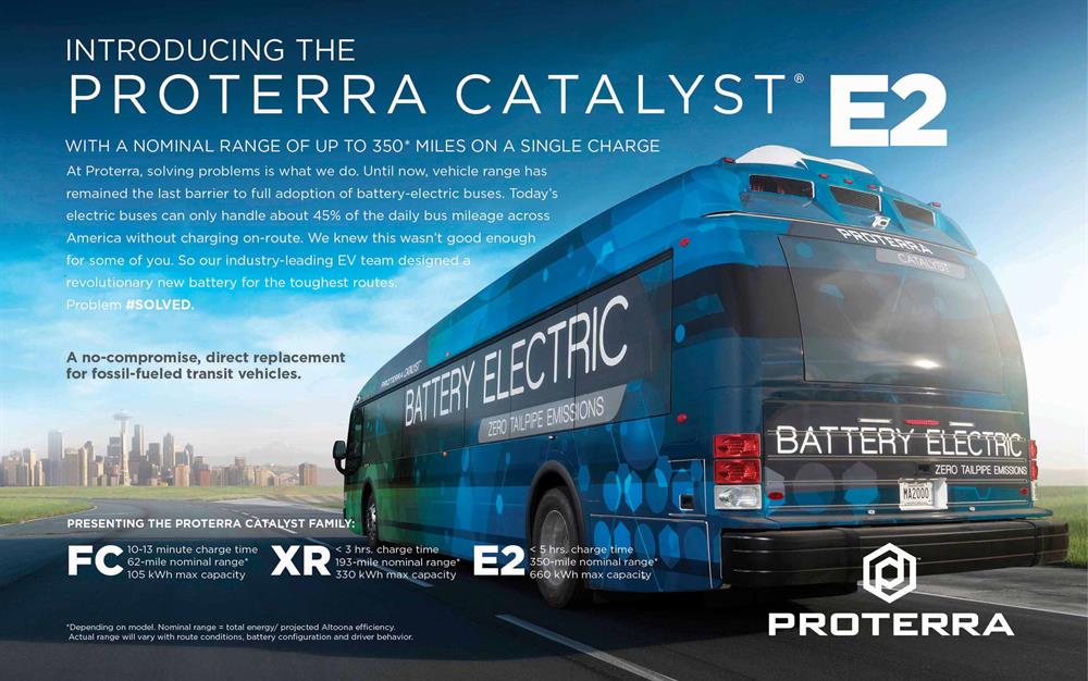 Önümüzdeki yirmi yıl içerisinde içten yanmalı motorların şehir içi kullanımının yasaklanması ve elektrikli otobüs teknolojisinin gelişmesi gerekiyor. Proterra firması bu teknoloji için 20 yıla gerek olmadığını düşünüyor.