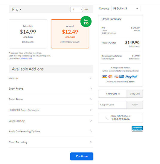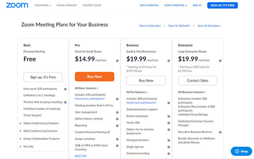 Uygulamanın kendi sitesinden duyurduğu planlardan ücretsiz olanı seçtiğiniz zaman 40 dakikalık dersleri gerçekleştirebiliyor, 100'e kadar öğrenci ile video-konferans yapabiliyorsunuz. Bu plan da öğretmenlerimizin öğrencileri ile iletişim kurması açısından son derece yeterli. Siz şirketinizin adına başka bir plan seçmek istiyorsanız eğer bu sefer zoom'un kendi sitesinden duyurduğu planlardan birini seçip ona göre bir ücret ödüyorsunuz. Bunun için şirketin otomatik olarak kredi kartınızdan çekim yapabilmesi mümkün değil. Ücretli planı seçtikten sonra bilgilerinizi girip birkaç adımı tamamlamanız gerekiyor.