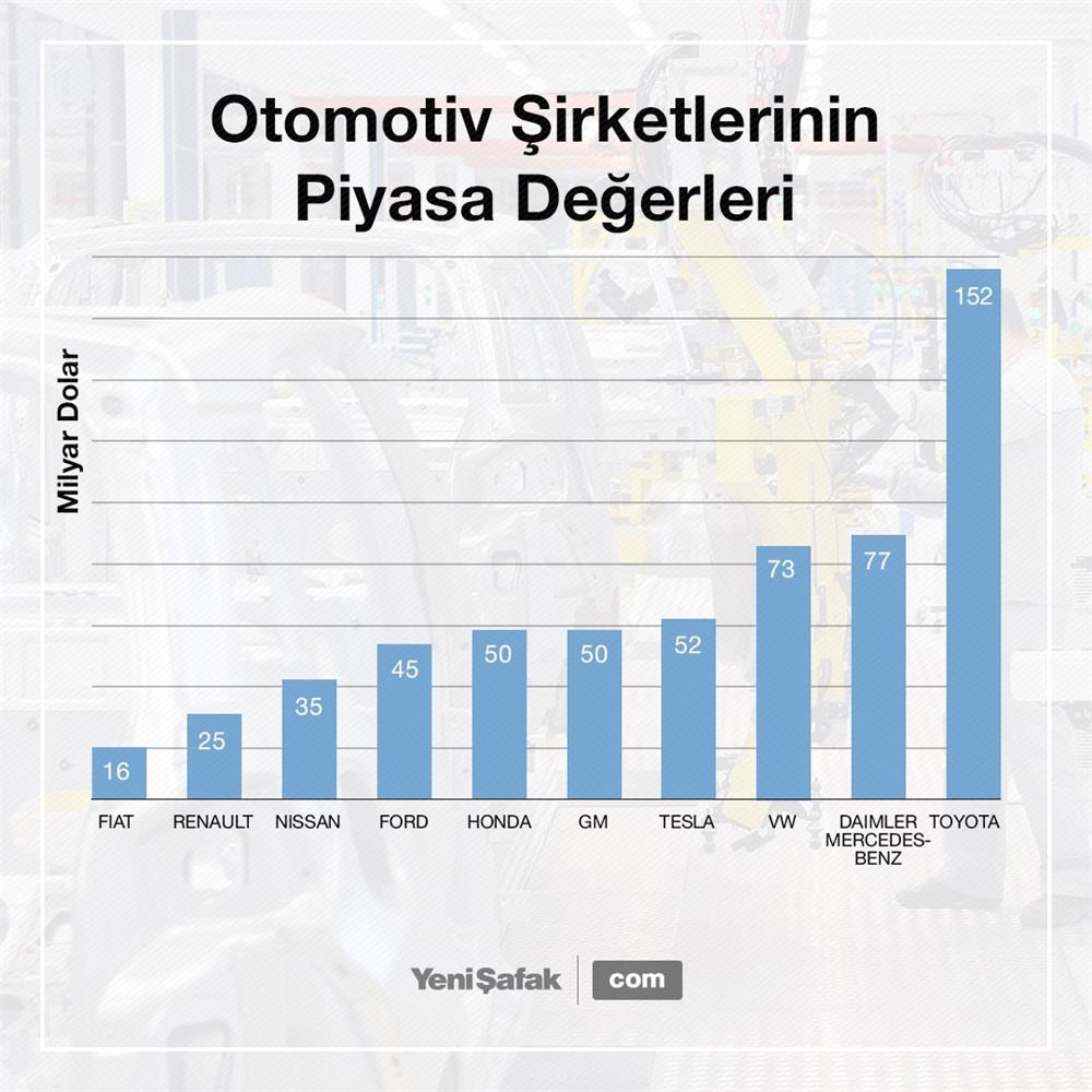 Küresel bağlamda Otomotiv Şirketlerinin Piyasa Değerleri ise şu şekilde: