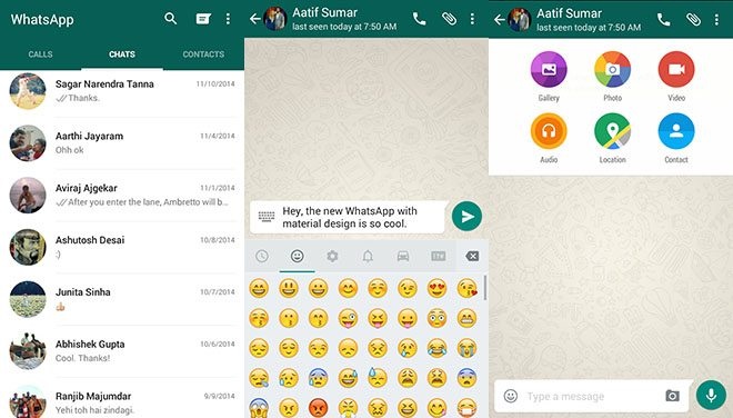 Yeni WhatsApp ile Android kullanıcıları değişen bir görünümün yanında yeni simgeler, animasyonlar ve renkleri değiştirilebilen emojilere kavuşmuş durumda. Google'ın öve öve bitiremediği Materyal Tasarım'ı “tam anlamıyla" yansıtmasa da, WhatsApp'ın bir önceki Holo arayüzüne sahip tasarımından çok daha şık görünüyor.