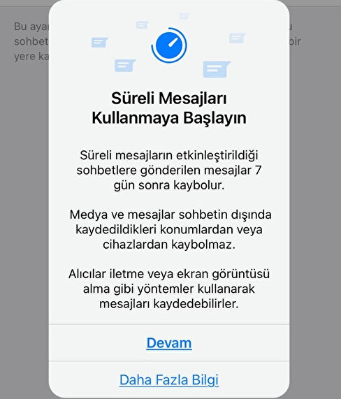 otomatik olarak siliniyor. Ancak bu süre zarfında göndermiş olduğunuz mesajlar kopyalanabilir, kaydedilebilir ya da saklanabilir.