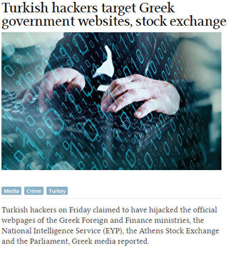Yunan gazetesi Kathimerini'nin iddiasına göre; Türk hackerların hacklediği siteler arasında Yunan İstihbarat Servisi de bulunuyor. Gazetede çıkan açıklamaya göre; Türk hackerlar ülkemiz hakkında negatif içerikler üreten sitelere hacklemeye devam edecekler
