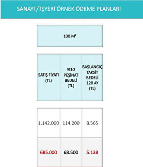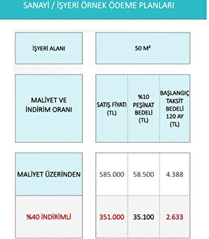 TOKİ işyeri başvuru ücreti ve ödeme planı