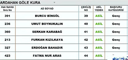Ardahan Çıldır kura sonuçları isim listesi