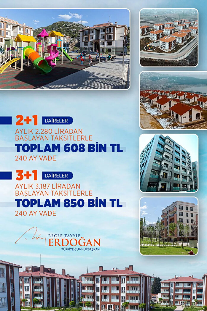 - Konutlar, %10 peşin 240 ay vadeli sabit taksit ödemeli ve taksit başlangıçları konut teslimlerini takip eden ay itibariyle başlayacak şekilde konut satışı yapılacaktır. (Şehit Aileleri, Terör, Harp ve Vazife Malulleri Kategorisinden bir kez konut satışı yapılacaktır.)