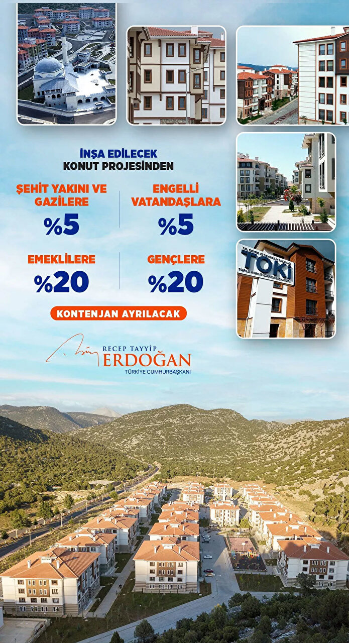 Şehit yakını ve gazilere: 12 bin 500 konutluk kontenjan ayrılacak.