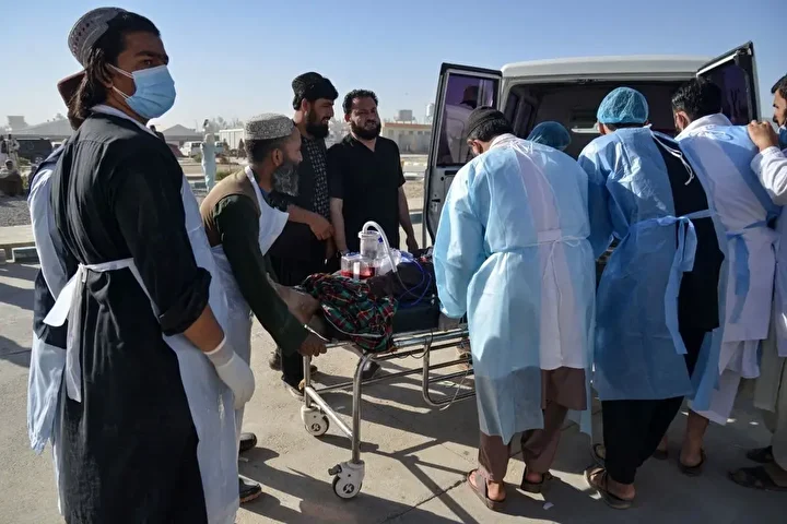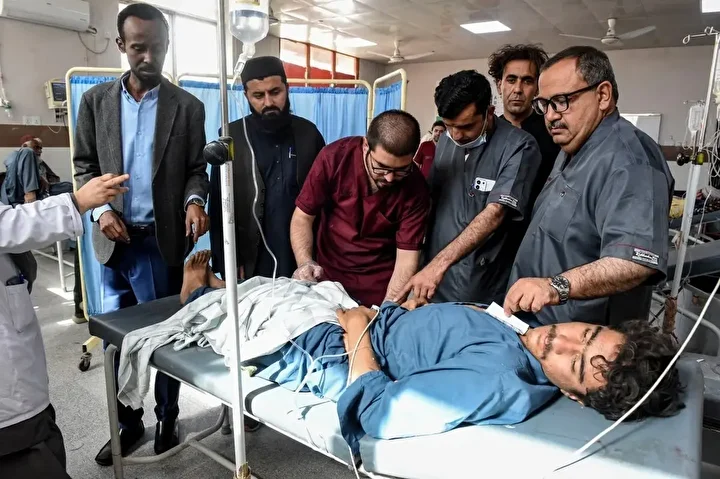 پاکستانی پیرامیڈکس چمن میں پاکستان-افغان سرحدی کشیدگی کے دوران زخمی شخص کا علاج کوئٹہ ہسپتال میں کر رہے ہیں
