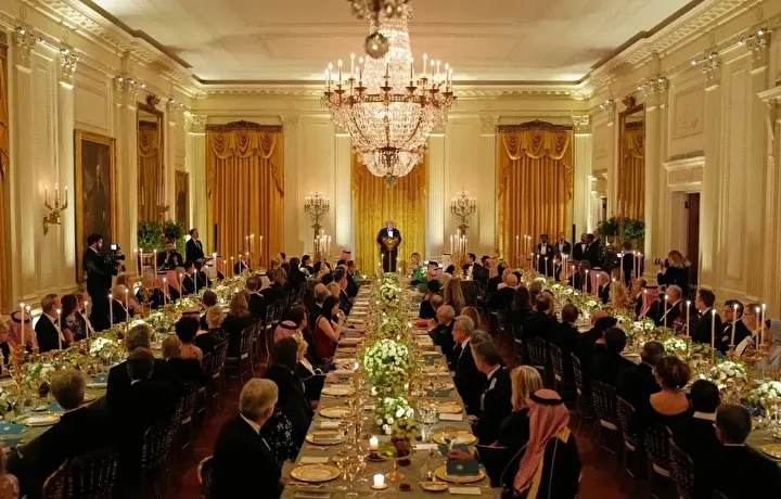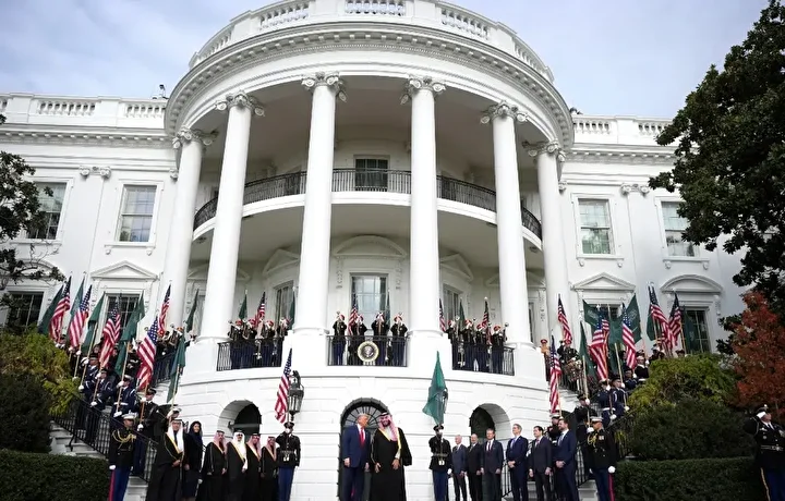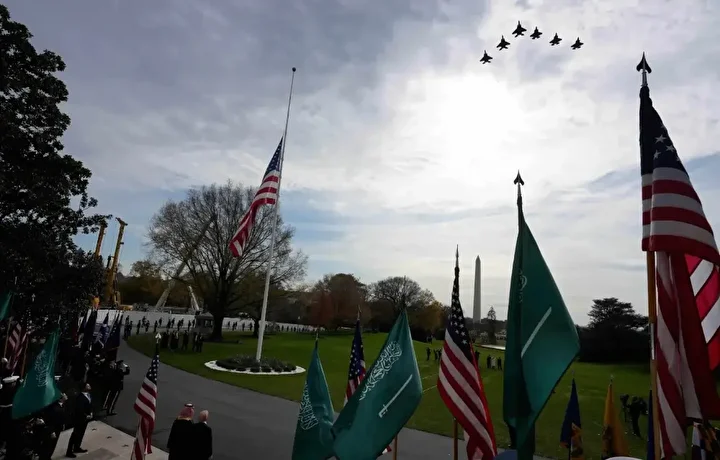 سعودی ولی عہد شہزادہ محمد بن سلمان وائٹ ہاؤس پہنچے جہاں امریکی صدر ڈونلڈ ٹرمپ نے اُن کا پرتپاک استقبال کیا۔ منگل کو جب سعودی ولی عہد وائٹ ہاؤس پہنچے تو ان کا استقبال سُرخ قالین بچھا کر کیا گیا، مارچنگ بینڈ، پرچم اٹھائے گھڑ سوار فضائیہ کی جانب سے فلائی پاسٹ کی تقریب بھی منعقد کی گئی۔