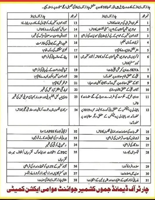 بیان کے مطابق ’عوامی ایکشن کمیٹی نے پاکستان یا اس کی مسلح افواج کے خلاف کوئی مہم شروع نہیں کی۔ یہ تحریک مکمل طور پر پرامن اور آئینی ہے اور اس کا مقصد صرف کشمیری عوام کے سماجی، معاشی اور سیاسی حقوق کو یقینی بنانا ہے۔‘