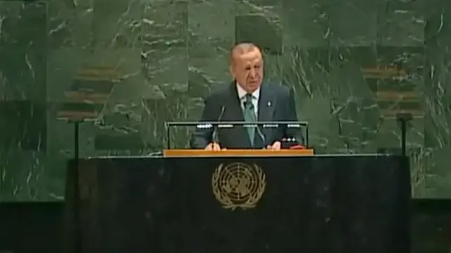 ترکیہ کے صدر رجب طیب اردوان نے اقوام متحدہ جنرل اسمبلی سے خطاب میں کہا کہ ’ہمیں خوشی ہے کہ انڈیا اور پاکستان کے درمیان اپریل میں ہونے والی کشیدگی جو تنازع میں بدل گئی تھی، وہ جنگ بندی پر ختم ہوئی۔ کشمیر کا مسئلہ اقوامِ متحدہ کی قراردادوں کے مطابق بات چیت سے حل ہونا چاہیے۔ ہمارے کشمیری بھائیوں اور بہنوں کی بھلائی کے لیے۔ یہی ہماری امید ہے‘۔
