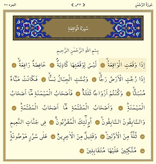 - Arapça Adı:سُورَةُ الْوَاقِعَةِ