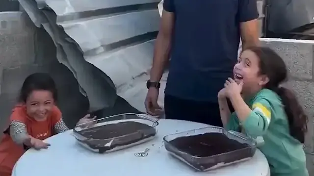 Terör devleti İsrail ile Hamas arasında ateşkes anlaşması imzalandı. Uzun zaman sonra rahat bir nefes alan Gazzeliler, çocuklarla birlikte tatlı yaptı. Gazzeli çocukların yüzünde tebessüm oluştu.