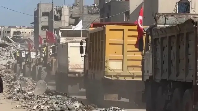 İnsan Hak ve Hürriyetleri (İHH) İnsani Yardım Vakfı, İsrail'in sistematik saldırıları nedeniyle harabeye dönen Gazze'de, enkaz kaldırma çalışmalarını yürütüyor ve bölge halkının ihtiyacı için temiz su dağıtıyor. Vakıftan yapılan açıklamaya göre, Gazze Şeridi'nde düzenlenen saldırılar nedeniyle 454 binden fazla konut tamamen yıkıldı, okullar, hastaneler, altyapı tesisleri ve kamu binaları kullanılamaz hale geldi. İHH, özellikle Gazze'nin kuzeyinde büyük yıkıma uğrayan bölgelerde ağır iş makineleriyle enkaz kaldırma faaliyetleri yürütüyor. Bu çalışmalarla, hem halkın ulaşımını kolaylaştırmak hem de yardım malzemelerinin dağıtımını hızlandırmak hedefleniyor. Altyapının tamamen çökmesi nedeniyle içme suyu kaynaklarının büyük bölümü kullanılamaz hale gelmesi nedeniyle vakıf, günlük olarak binlerce kişiye nitelikli içme suyu ulaştırıyor. İHH, gıda, barınma, sağlık, hijyen ve psikososyal destek gibi alanlarda yardım çalışmalarını sürdürüyor. Vakıf, 7 Ekim 2023'ten bu yana bölgede 37 milyon 36 bin 381 öğün sıcak yemek, 133 milyon 635 bin 120 ekmek, 129 bin 789 çuval un, 10 bin çuval glütensiz un, 1 milyon 211 bin 83 muhtelif gıda, 214 bin 26 kumanya, 92 bin 924 paket hasta ve bebek bezi, 124 bin 814 hijyen paketi, 1938 ilaç ve tıbbi malzeme, 407 tekerlekli sandalye, tıbbi yatak, hasta yürüteci ve koltuk değneği, 6 bin 581 aileye nakdi yardım ile 2 bin 749 tanker içme suyu dağıttı. Gazze'de, 74 bin 810 vacip ve adak hissesi, 79 bin 360 barınma desteği, 73 bin 105 battaniye, 143 bin 41 parça kıyafet, 12 ambulans, 357 ameliyat desteği, 17 bin 848 paket sebze, 1325 kırtasiye malzemesi, 7 çadır kent, 8 mescit çadırı ve 485 litre yakıt desteği sağlandı. Bölgedeki yardım kampanyasına destek olmak isteyenler vakfın internet sitesinden bilgi alabiliyor.