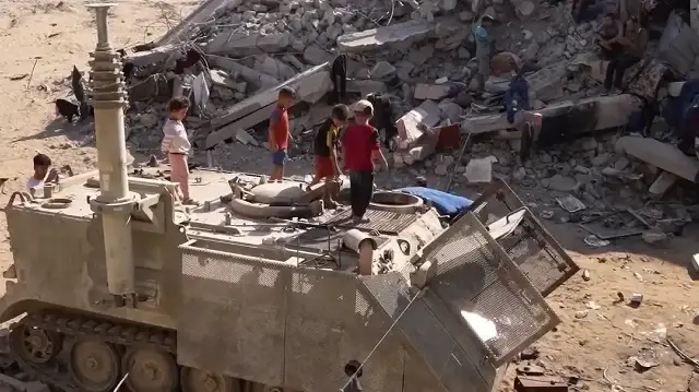 İsrail ordusunun Gazze Şeridi’nin kuzeyinden çekilmesinin ardından Cibaliye bölgesinde bırakılan bir zırhlı personel taşıyıcı araç, Filistinli bir ailenin yaşam alanına dönüştü. Zırhlı araç, evleri kısmen yıkılmış aile tarafından çamaşır yıkama, mutfak malzemeleri saklama ve çocukların oyun alanı olarak kullanılmaya başlandı.