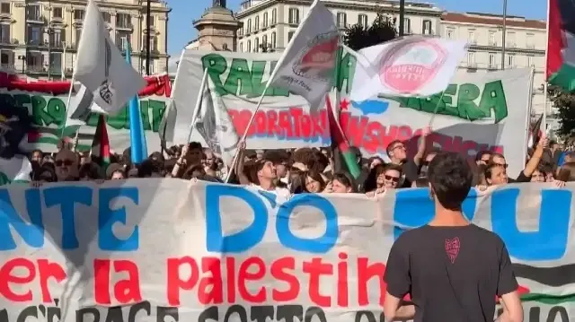 İtalya’nın Napoli şehrinde, Filistin’e destek yürüyüşü düzenlendi. Filistin bayrakları, dövizler ve pankartlar taşıyan göstericiler, “soykırımın durdurulması”, “Siyonist sömürgeci rejime son verilmesi” gibi çağrıları yaptı.