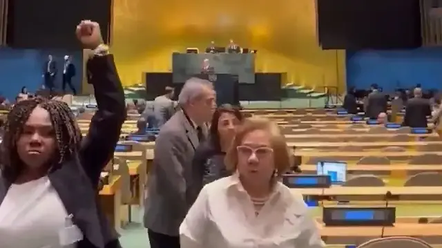 Gazze kasabı Binyamin Netanyahu'nun Birleşmiş Milletler Genel Kurulu'nda yaptığı konuşma esnasında birçok ülkenin heyeti salonu terk etti. Kolombiya heyeti de Gazze'ye olan desteklerini göstermek için 'Özgür Filistin' sloganlarıyla Netanyahu’yu protesto etti.