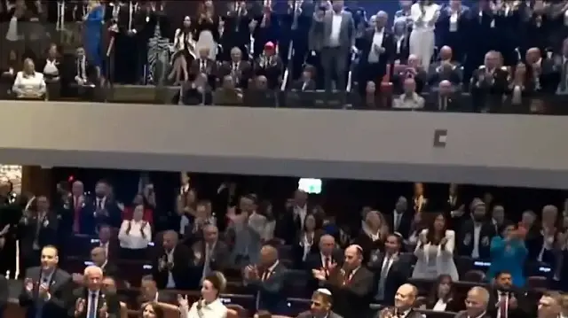 ABD Başkanı Donald Trump'ın İsrail Meclisi Knesset'teki konuşması sırasında "Filistin'i tanı" yazılı pankart açan Filistin asıllı İsrailli milletvekilleri Ayman Odeh ve Ofer Cassif apar topar salondan çıkarıldı.