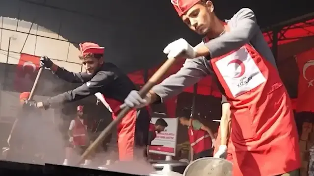 Türk Kızılay, Filistin halkı için bağışlanan kurban etlerini Gazze’de dağıtmaya başladı. Ambargo ve yıkıma rağmen, her tencerede bir umut, her lokmada bir dua var. Gazze’nin Deyr el-Belah kentinde Türk Kızılay’ın aşevi yeniden faaliyete geçti. Türkiye’den gönderilen kurban konserveleri, günlerdir sıcak yemeğe ulaşamayan Filistinlilere ulaştırılıyor. Aşevinde her gün 21 bin öğün sıcak yemek hazırlanıyor. Ambargo ve İsrail’in insani yardımlara koyduğu kısıtlamalar nedeniyle dağıtımlar gecikmeli yapılsa da Türk Kızılay ekipleri tüm zorluklara rağmen görevini sürdürüyor. Türk Kızılay Filistin Delegasyonu, “Bağışçılarımıza Gazze’yi unutmadıkları için şükranlarımızı sunuyoruz.” açıklamasını yaptı. Gazze’de 2 yıldır süren İsrail saldırılarında 69 bin Filistinli hayatını kaybetmiş, 170 binden fazlası yaralanmıştı. Yıkımın ortasında Türk Kızılay’ın yardımları, adeta Filistin’in nefes borusu oldu.