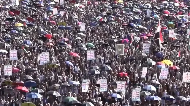 Yemen’in başkenti Sana’da Sebin Meydanı’nda toplanan on binlerce kişi, terör devleti İsrail’in Gazze’ye yönelik saldırı ve açlık politikalarını protesto etti.