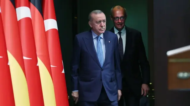 Cumhurbaşkanı Recep Tayyip Erdoğan, Almanya Başbakanı Friedrich Merz ile görüşmesi sonrası ortak basın toplantısı düzenledi. Liderler toplantı sonrası gazetecilerin sorularını yanıtladı. İsrail devletinin kurulmasından beri İsrail Devleti'nin yanında olduklarını belirten Merz, İsrail'in Hamas'a karşı savunma hakkını kullandığını, Hamas'ın silah bıraktığı an savaşın biteceğini ve Gazze'deki çocukların Hamas'ın birer rehinesi olduğunu iddia etti. Bu söylemlere kayıtsız kalmayan Cumhurbaşkanı Erdoğan, Şansölye'nin sözlerine katılmadığını belirterek yeniden söz aldı. Cumhurbaşkanı Erdoğan, İsrail’e methiyeler düzen Merz’e dönerek ‘Hamas'ın elinde bombalar yok. Nükleer silah yok. Ama bu silahların hepsi İsrail'in elinde mevcut. Dün akşam Gazze'yi vurdular’ ifadelerini kullandı ve ‘Almanya soykırımı görmüyor mu?’ diye sordu.