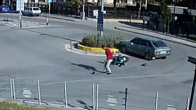 Amasya’da otomobille çarpışan motosiklet sürücüsü havada takla atarak metrelerce savruldu. Kazayı mucize eseri hafif atlatan genç sürücünün, ayağa kalkar kalkmaz yaptığı ilk şey ise fırlayan ayakkabısını giymek oldu. Söz konusu kaza, Ferhat Tüneli çıkışındaki kavşakta meydana geldi. Eren F. yönetimindeki motosiklet, dönüş yapmak isteyen Recai B.’nin kullandığı 19 UC 816 plakalı otomobile yandan çarptı. Çarpmanın etkisiyle motosikletli havaya fırlayıp takla attı; kaskı ve ayakkabısı etrafa savruldu. Metrelerce yuvarlanan genç, kısa sürede ayağa kalktı. Şok içinde etrafına bakan sürücünün ilk refleksi, yola fırlayan ayakkabısını gidip tekrar giymek oldu. Motosikletini yerden kaldırmak isteyen gence çevredeki vatandaşlar yardım etti. Kazayı hafif yaralarla atlatan sürücü, olay yerine gelen ambulansla hastaneye kaldırıldı. Sağlık durumunun iyi olduğu öğrenildi. O anlar, çevredeki bir iş yerinin güvenlik kamerasına saniye saniye yansıdı.