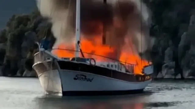 Antalya’nın Demre ilçesi açıklarında bulunan bir gulet, henüz belirlenemeyen bir nedenle alev aldı. Denizin ortasında yükselen dumanlar paniğe neden olurken, bölgeye hızla Sahil Güvenlik ekipleri sevk edildi. Kekova Mahallesi açıklarında meydana gelen olayda, kısa sürede alevlerin sardığı gulete ekipler yangın söndürme araçlarıyla müdahale etti. Yoğun çabanın ardından yangın kontrol altına alınarak tamamen söndürüldü. Yangında can kaybı yaşanmazken, gulet kullanılamaz hale geldi. O anlar çevredeki teknelerde bulunan vatandaşlar tarafından cep telefonu kamerasıyla kaydedildi.
