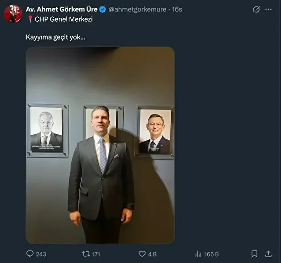 Profilinde 2023-2024 yılları arasında CHP İstanbul İl Gençlik Kolları Başkan Yardımcısı olduğu bilgisi yer alan Üre, Kemal Kılıçdaroğlu'nun fotoğrafının önünde durduğu bir fotoğrafa