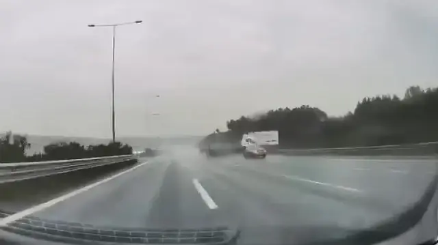 Beykoz Kuzey Marmara Otoyolu'nda seyir halinde olan TIR şoförü, iddiaya göre yağışlı hava nedeniyle kayganlaşan yolda direksiyon hakimiyetini kaybetti. TIR otoyolda ters dönerek şarampola yuvarlandı. TIR'ın otoyolda ters döndüğü ve sağ şeritte ilerleyen otomobille karşı karşıya geldiği anlar araç kamerasına yansıdı.