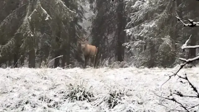 Bolu’nun yüksek kesimlerinde karla kaplanan ormanlık alanda kızıl geyik kameralara yansıdı. Doğasever Sefa Eskioğlu, ormanda yürüyüş yaptığı sırada karşılaştığı geyiği cep telefonuyla görüntüledi. Görüntülerde, karlı ormanda zarif adımlarla yürüyen ve zaman zaman böğürerek çevreyi dinleyen kızıl geyik dikkat çekti. Doğa Koruma ve Milli Parklar Şube Müdürlüğü yetkilileri, kızıl geyiklerin özellikle çiftleşme dönemlerinde çıkardıkları böğürme sesleriyle bölge hakimiyetini belirlediklerini belirtti. Yetkililer ayrıca, yaban hayatının korunması için doğada karşılaşılan hayvanların korkutulmadan ve müdahale edilmeden izlenmesi gerektiğini vurguladı.