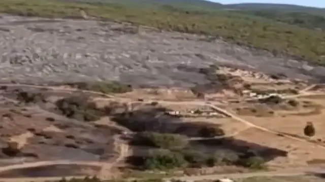 Bursa'nın Karacabey ilçesinde 16 saatlik hummalı çalışmanın sonucunda söndürülen ormanlık alandaki yangından geriye kalan küle dönmüş alan, böyle görüntülendi.