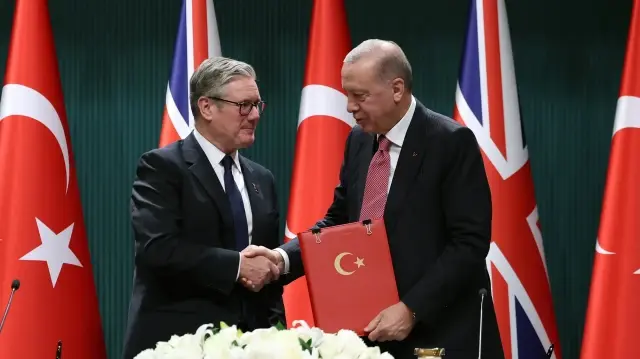 Cumhurbaşkanı Recep Tayyip Erdoğan ve Birleşik Krallık Başbakanı Keir Starmer, Cumhurbaşkanlığı Külliyesi'ne ortak basın toplantısı düzenledi. Cumhurbaşkanı Erdoğan, 20 adet Eurofighter Typhoon savaş uçağı satışını kapsayan 8 milyar sterlinlik (10,7 milyar dolar) anlaşmanın imza töreninde, "Bu anlaşmayı aramızdaki ilişkilerin yeni bir nişanesi olarak görüyoruz." dedi.