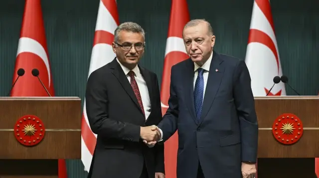 Cumhurbaşkanı Recep Tayyip Erdoğan, Kuzey Kıbrıs Türk Cumhuriyeti (KKTC) Cumhurbaşkanı Tufan Erhürman ile görüşmesi sonrası ortak basın toplantısı düzenledi. Erdoğan, "KKTC Cumhurbaşkanı Erhürman'ın Rum tarafına verdiği mesajlarda Kıbrıs Türkü'nün egemen eşitliğinden taviz verilmeyeceğini vurgulamasını isabetli buluyorum" şeklinde konuştu.