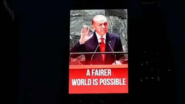 Cumhurbaşkanlığı İletişim Başkanlığı koordinasyonunda Birleşmiş Milletler 80. Genel Kurulu’nun gerçekleştirildiği New York’un merkezindeki cadde ve sokaklar ile Times Meydanı'ndaki led ekranlarda Cumhurbaşkanı Recep Tayyip Erdoğan’ın "A Fairer World Is Possible" (Daha adil bir dünya mümkün) sözü yansıtıldı.