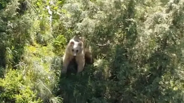 Erzurum'un Oltu ilçesinde doğa tutkunlarının yüzünü güldüren bir olay yaşandı. Yaban hayatındaki bir boz ayı kameraya yakalandı.