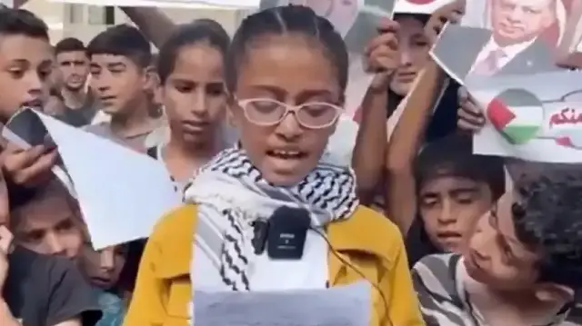 Filistinli çocuklar, İsrail'in Gazze Şeridi'ne yönelik devam eden saldırılarının sona ermesini talep eden seslerini yükseltti. Gazzeli çocuklar, Erdoğan'a acil insani bir mesaj ileterek, savaşın durdurulması için güçlü ve etkili adımlar atmasını ve Filistin halkına destek olmasını istedi. Cumhurbaşkanı Erdoğan’a ve Türkiye'nin Filistin'e destek tutumuna güvenlerini dile getiren Gazzeli çocuklar, saldırıyı kınayan ve uluslararası toplumu derhal harekete geçmeye çağıran pankartlar taşıdı.
