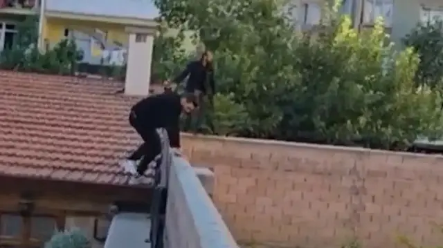 Konya'da hakkında çeşitli suçlardan kesinleşmiş hapis cezası bulunan cezaevi firari T.T, kendisini almaya gelen polisleri fark etmesi üzerinde saklandığı birinci kattaki evin penceresinden atladı. Şahsın kısa süre yakalandığı anlar kameraya yansıdı.